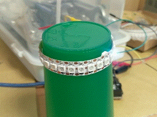 On a construit la base en bois, on a dessiné le support du servomoteur (coude) dans TinkerCAD et on a écrit le code Arduino pour faire un chenillard avec le ruban de LEDs.