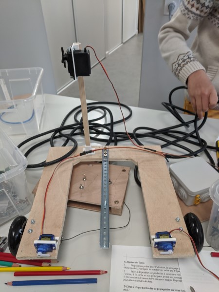 Prochaine séance : continuer la fabrication des pavillons, fixer le câble, câbler les moteurs et tester la motorisation