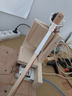 On a terminé le câblage et ajouté des planches de bois pour cacher le câblage. On a assemblé le code Arduino des servomoteurs et celui des LEDs et commencé à tester.