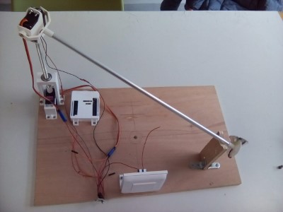 On a soudé les fils d’alimentation 5 V. On a terminé la modélisation du support du servomoteur et du bras de l’actionneur pour les manches à air.