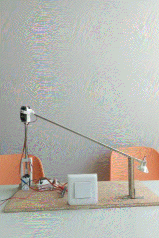 On a affiné le programme de l’Arduino et monté une ampoule : le phare se dresse ! Mais on est obligé de forcer sur la mécanique pour le replier, ce qui dérègle les angles (ça se voit déjà sur l’animation ci-contre)