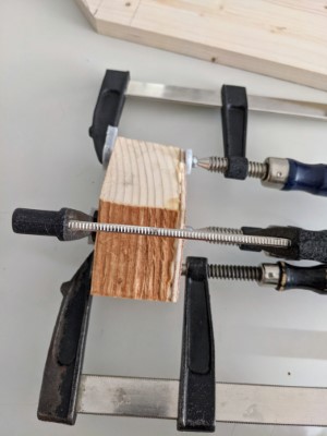 On a élargi le support en bois. On a commencé à concevoir la vitrine, avec l’emplacement pour déposer la statuette.