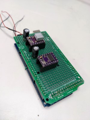 On a résolu les problèmes de pilotage du moteur pas-à-pas (côté logiciel), on a soudé la deuxième carte de pilotage de moteurs.