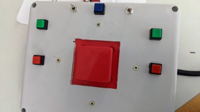 On a installé 5 poussoirs et 2 interrupteurs à levier sur la télécommande. On a commencé à les câbler.