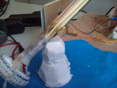On a terminé de câbler l’Arduino, on a commencé à ranger les câbles. On a testé l’actionneur pour les manches à air : problème, on ne pas reculer suffisamment pour glisser l’actionneur.